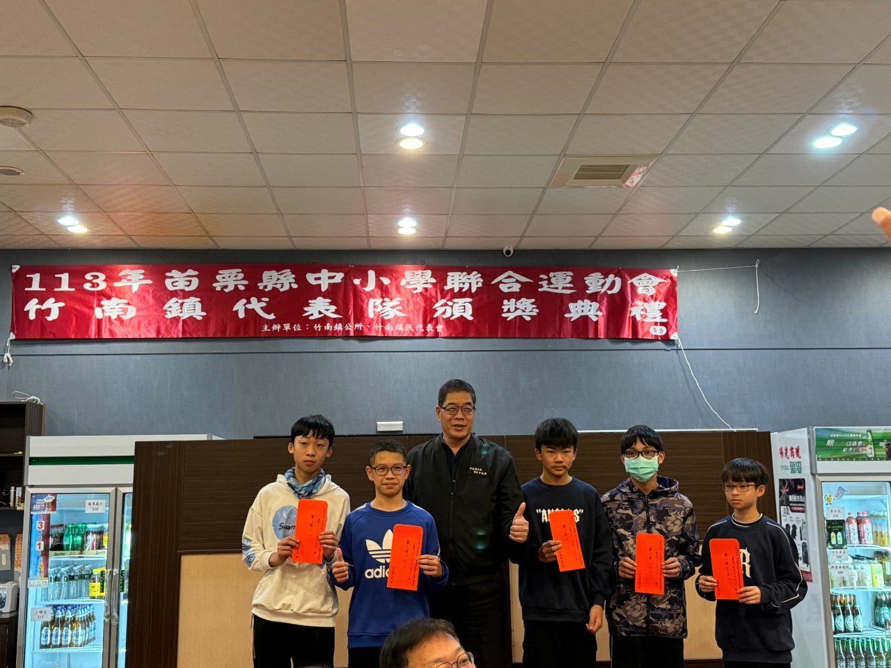 竹南鎮公所於1月26日下午17時30分於來來龍鳳城辦理頒獎典禮暨檢討餐會,由方進興鎮長主持開幕,鎮民代表們及各校校長也到現場為選手們道賀並頒發獎勵金20萬4750元嘉獎選手及教練。