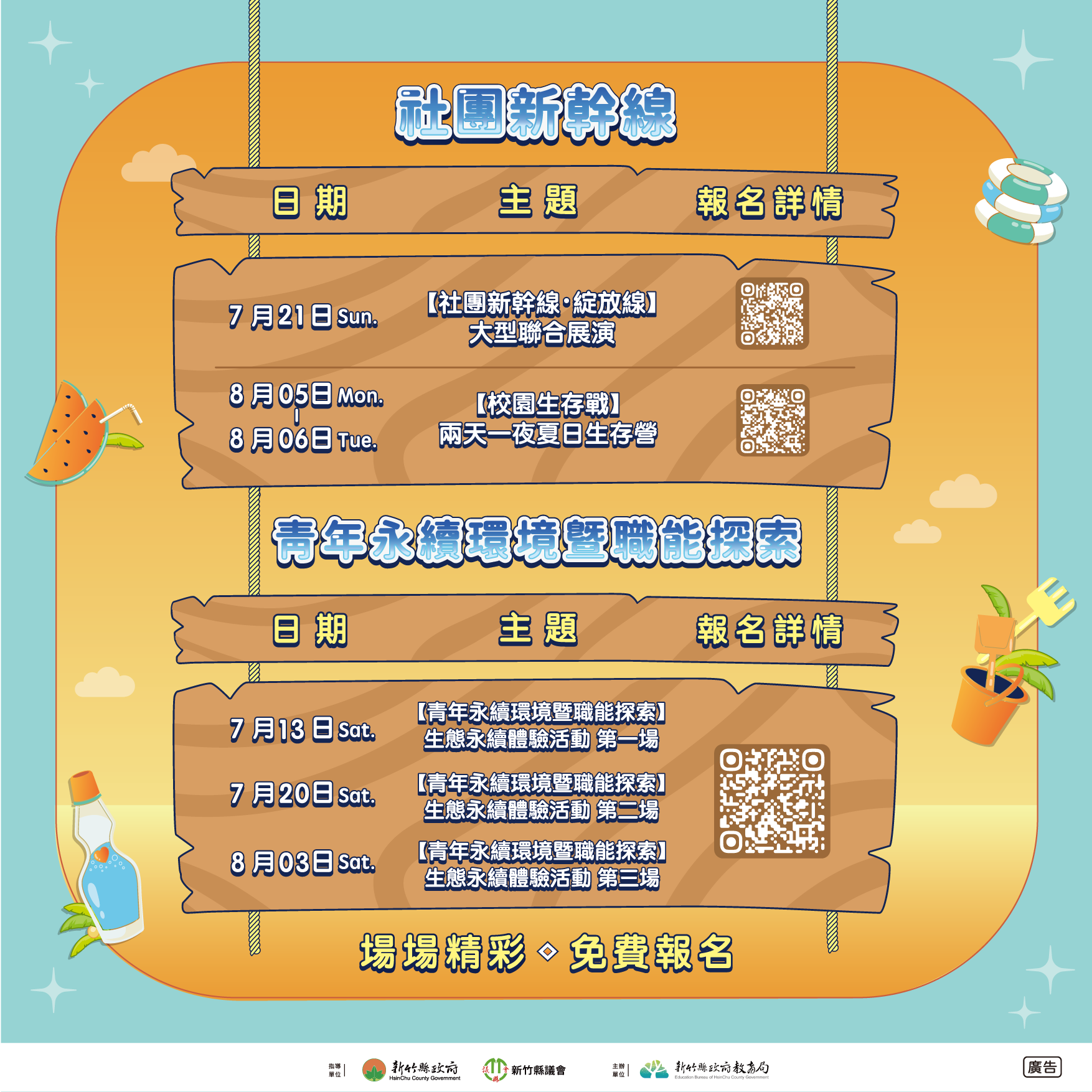 113年「竹青盛夏Fun暑學堂」更多系列活動詳細內容、報名方式,可以前往「新竹縣政府教育局青年事務科FB粉絲專頁」,掌握第一手活動消息。