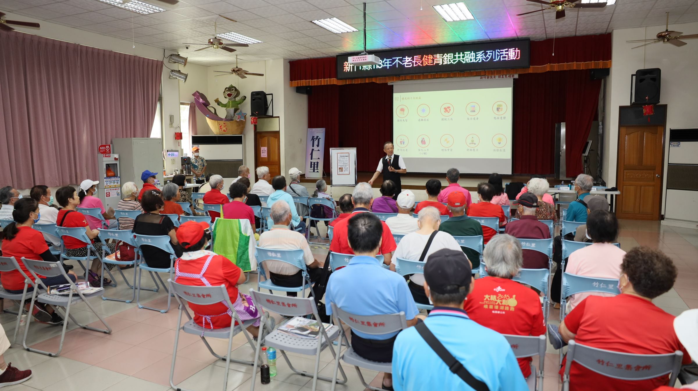 在逐漸邁入超高齡社會之際,「學老」已然是每個人不可忽視的重要課題!新竹縣政府社會處規劃6場不老長健系列講座,首場日前在竹北市竹仁社區關懷據點登場,邀請高齡88歲的前福邦證券公司董事長丁桐源,和長輩們分享「健康學老的五堂課—好好走路,不會老」,丁董事長被稱為「台灣健走先生」,靠長期運動和重視養生維持健康,他現身說法讓長輩們心有戚戚焉,講座上討論互動非常熱烈!