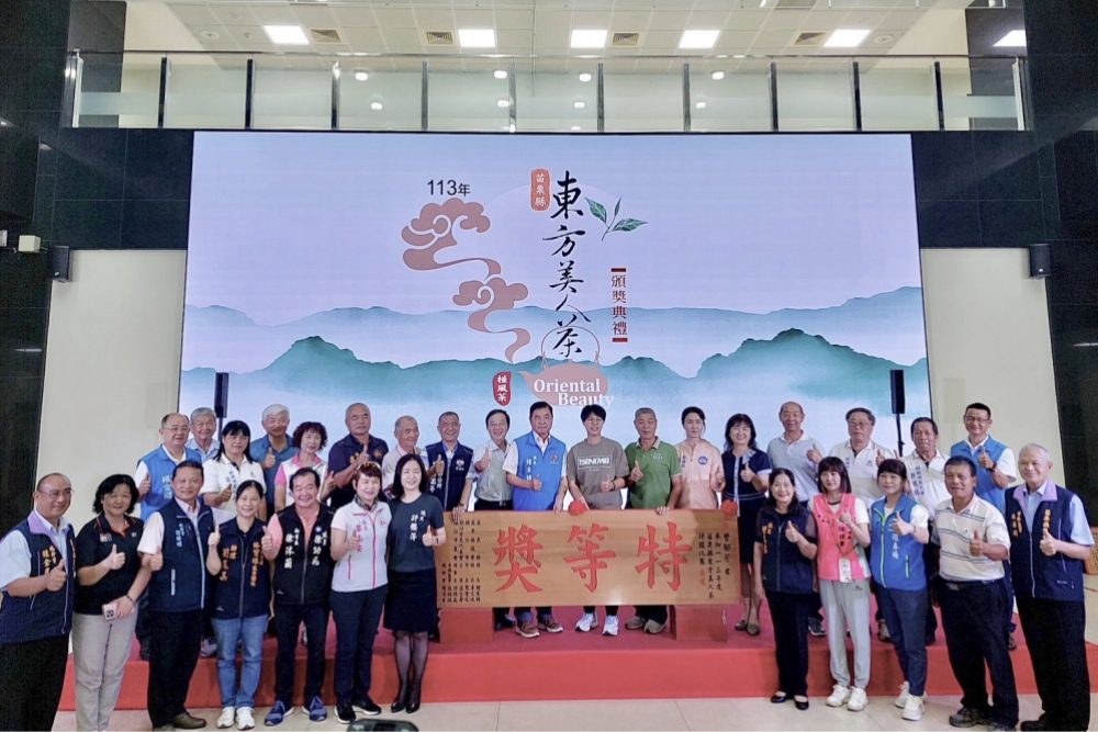 113年度苗栗縣東方美人茶頒獎典禮於7月30日在縣府一樓大廳舉行,特等獎、頭一、頭二、頭三、頭等獎項由茶農曾郁芳囊括,殊榮非凡,其餘四名頭等獎分別為造橋陳有凌、三灣廖盛榮、銅鑼管祐誠以及銅鑼韓順雄。縣長除了恭喜所有獲獎者,也給予茶農高度的期許,期盼苗栗的茶產業能持續朝品牌化、有機化、永續化方向發展。在頒獎現場亦有品茗活動,藉由品茗師精湛的沖泡手藝下,東方美人茶特殊的香氣瀰漫整個會場,幾位貴賓亦是聞香入席來細細品茶。