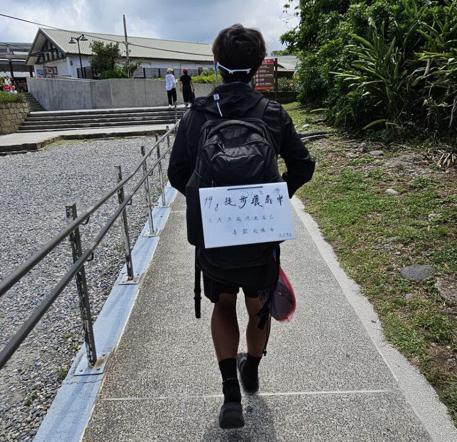 看來,這位年輕人似乎步履輕鬆,但是暑假天氣酷熱難熬,走在熱氣逼人的馬路上,其實是體能及耐力極大的挑戰,他每天大約走30公里,以堅毅不拔精神克服沿途身心靈各種挑戰。