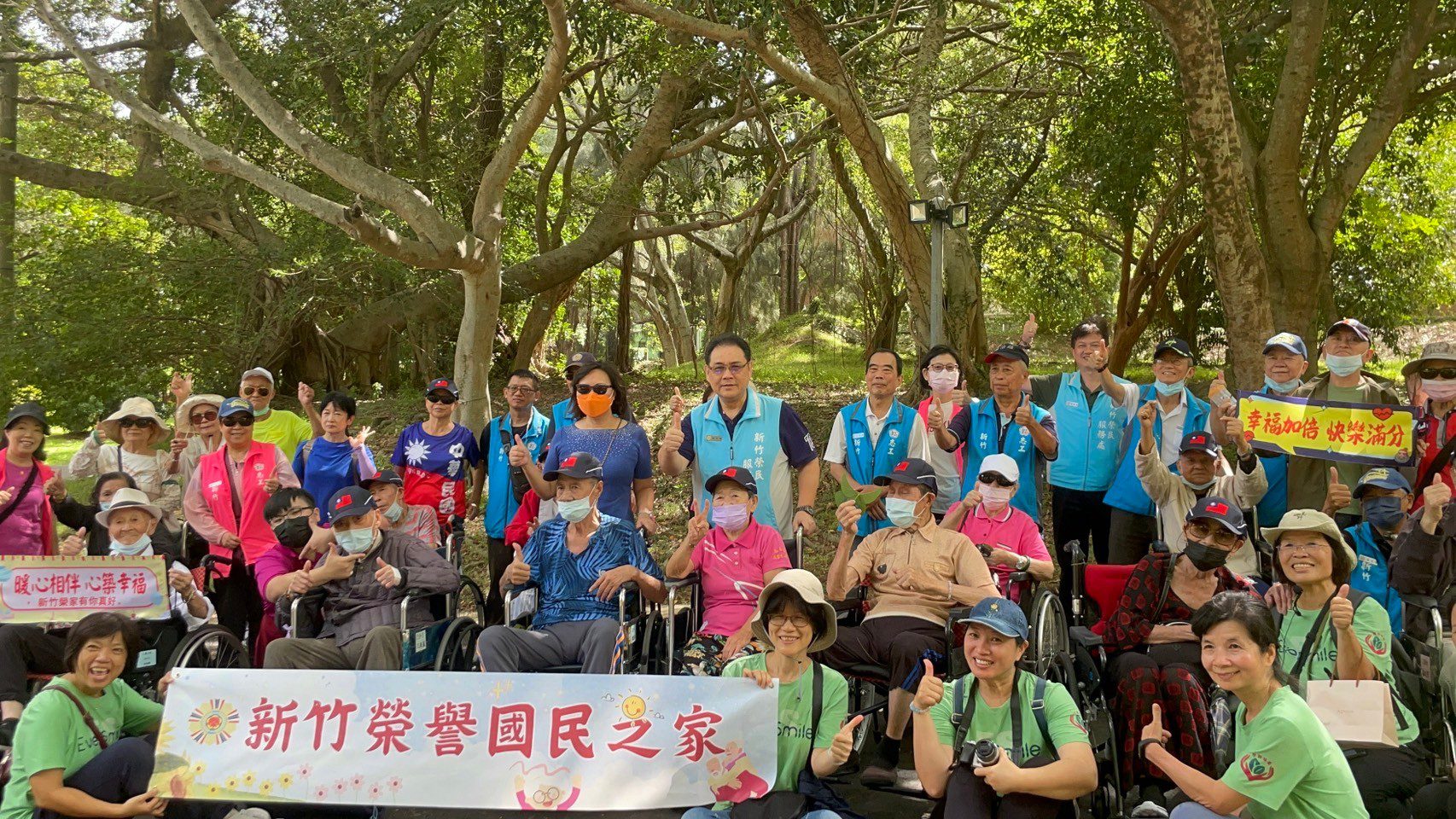 新竹榮服處日前協助新竹榮家舉辦初秋微旅行,帶著安養及養護長輩走訪工研院光明新村,由於養護長輩多以輪椅代步,新竹榮服處榮欣志工擔任陽光推手提供推送服務,陪伴住民長輩體驗生態之美,享受戶外活動樂趣。