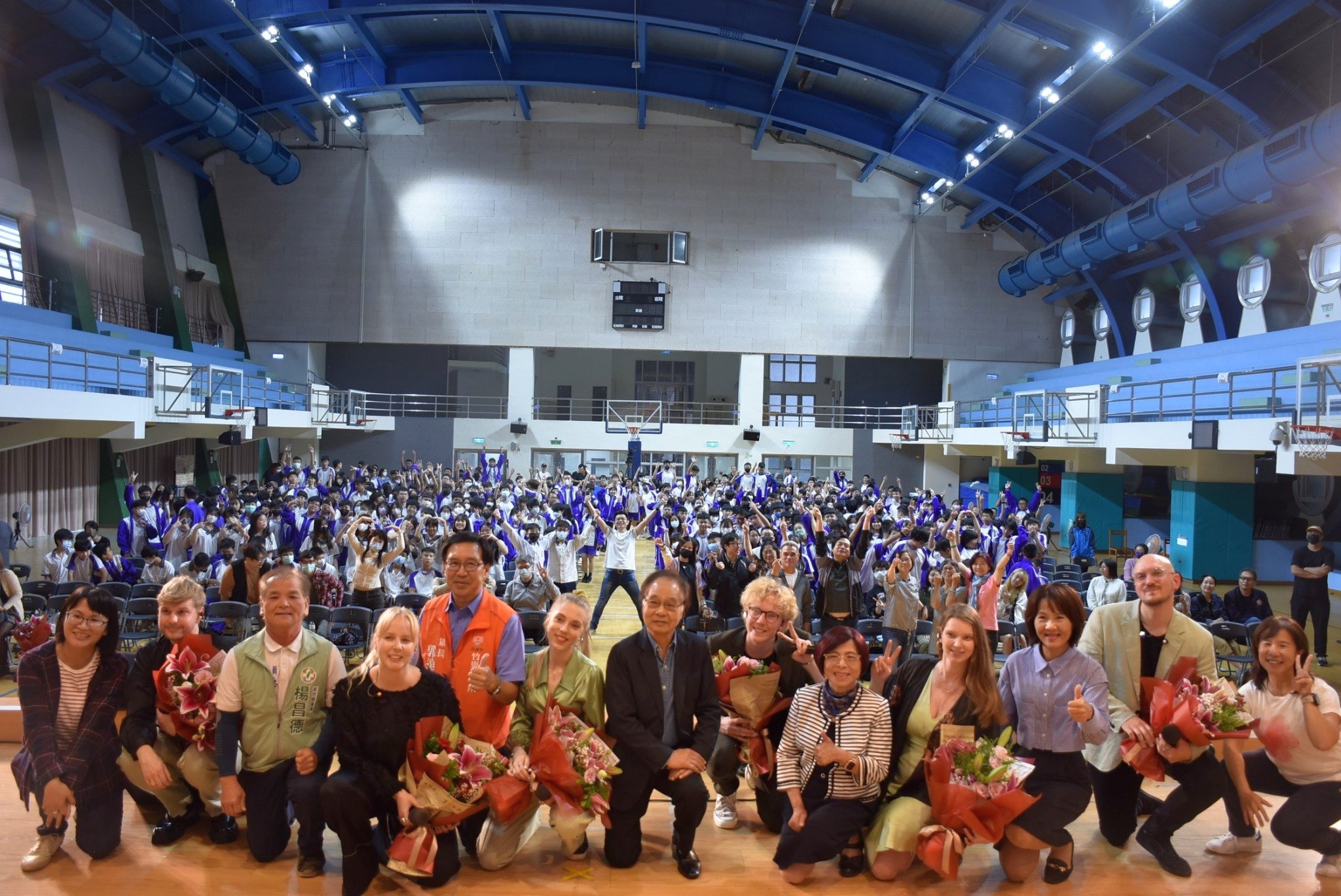 郭遠彰表示,AORA瑞典人聲樂團來台參加台灣國際重唱藝術節,在全台各地巡迴演唱,大部分的場次是安排在縣市政府或大學的演藝廳舉辦,有的甚至要買票進場,只有竹東的這一場是唯一進入國中校園的一場,而他們的演出果然也獲得孩子們的熱烈掌聲肯定。