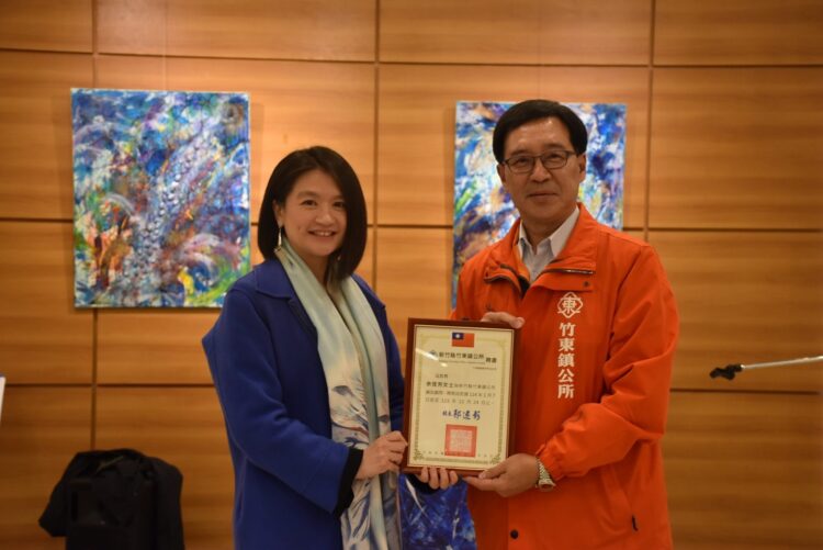 郭遠彰鎮長表示,他去年率團前往法國巴黎附近的大諾瓦西市從事城鎮外交、音樂、文化、教育等面向參訪,參訪團獲得在當地活躍的余佳芳博士熱情接待協助,而當時余佳芳博士配合巴黎奧運的應景畫作「奧運」在第一屆FangArts台法國際藝術沙龍展展出時,也獲得賴清德總統的賀電表揚,邀請到余博士擔任竹東鎮鎮政顧問,相信會對竹東鎮未來透過藝術外交方式站上國際舞台大有幫助。