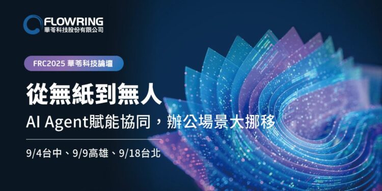 華苓科技年度論壇 Flowring Conference 2025(FRC2025),將於 9 月 4 日起於台中、高雄、台北三地舉辦,以 「從無紙到無人!AI Agent 賦能協同,辦公場景大挪移」 為主題,全面揭示 AI Agent 如何推動企業智慧辦公與營運升級。