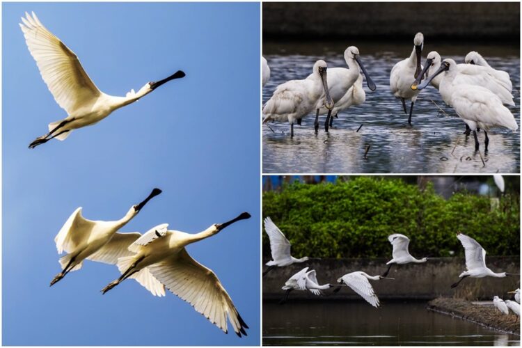 ▲黑琵單飛、雙飛、群飛的各種姿態,煞是美麗。(圖/吳楊欽攝)