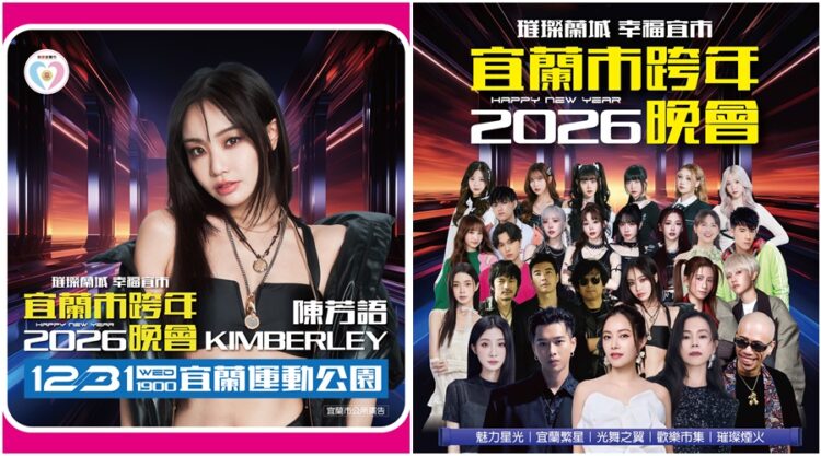 《2026璀璨蘭城 幸福宜市》跨年晚會卡司緊急調整更動!宜蘭市公所27日公告:晚會原定由王ADEN演出部分,已洽請廠商安排邀請全方位歌手陳芳語(Kimberley)參與演出。