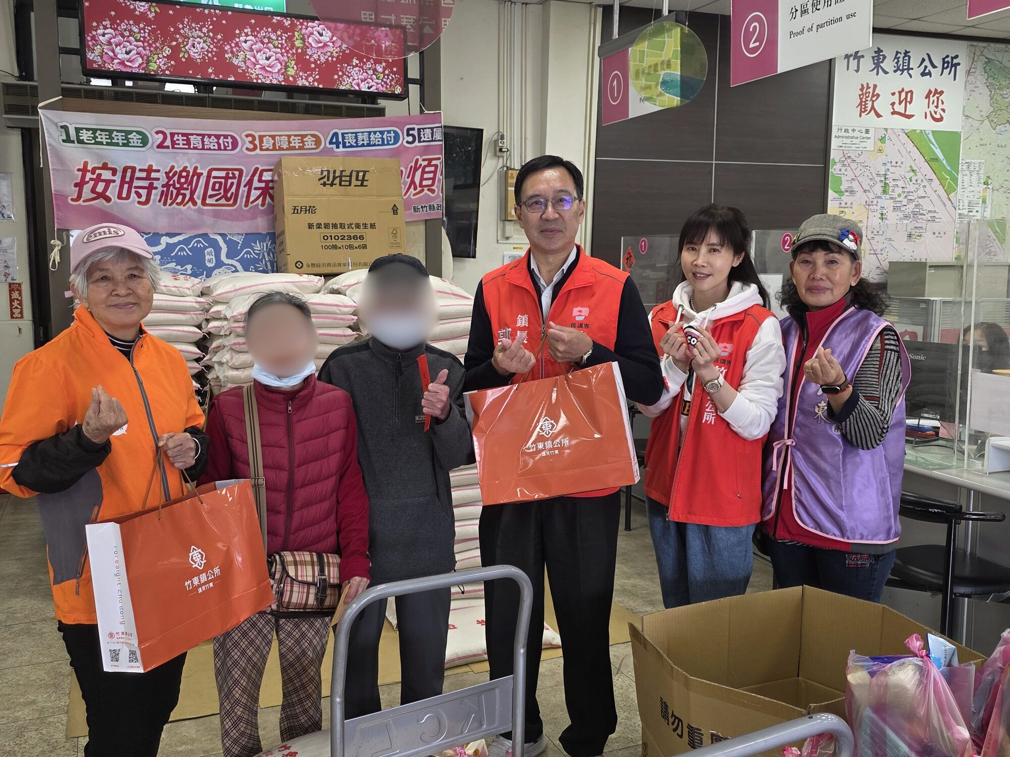 ▲新竹縣竹東鎮公所昨(27)日開始發放115年度低收入戶春節慰問金暨物資給低收入戶。(圖/竹東鎮公所提供)