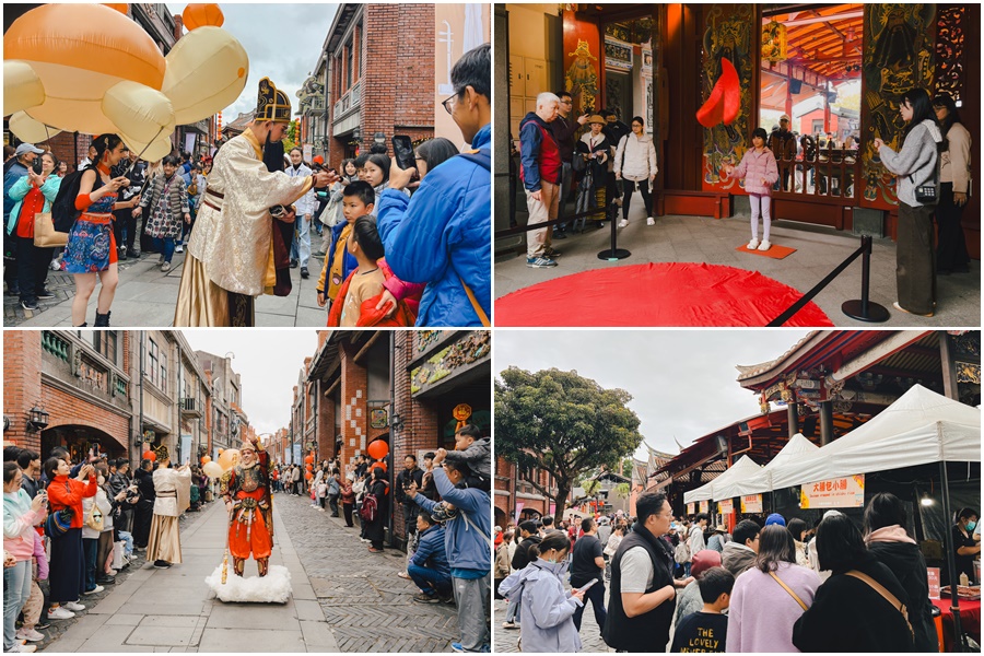 到宜蘭傳藝園區不僅看好戲,財神與金獅也在街區報喜,每天上演Q版財神派送喜糖、金獅靈動穿梭,民眾駐足觀賞拍照,感受十足的年節喜氣;文昌祠的「飛馬呈祥—跋杯祈福」亦現排隊人潮,為新的一年祈求平安、健康與好前途。